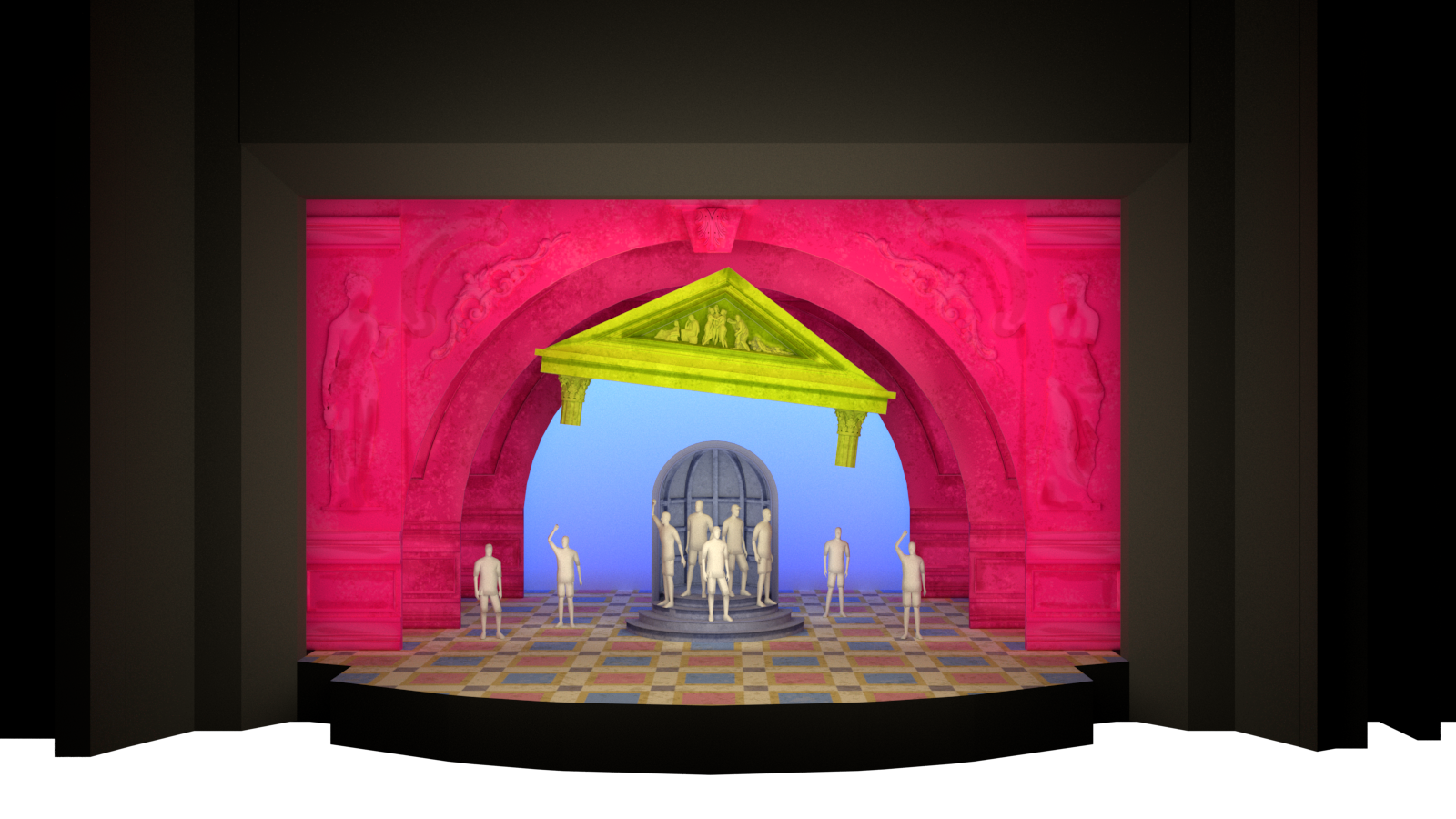 Set to a score of 80s pop rock, with themes that explore gender and sexuality, this produciton exemplifies the history and impact of Camp as it pertains to art and identity. This is developed through a palette of vibrant color set in contrast to ancient Greek architecture to create and overall dynamic composition.